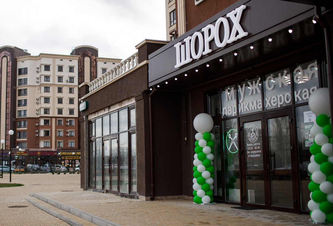 Мужская парикмахерская ШОРОХ -это 2 самых просторных барбершопа в Симферополе. Здесь есть по шесть рабочих мест, отдельные залы с двумя мойками для головы, много места в зоне ожидания и большие окна.